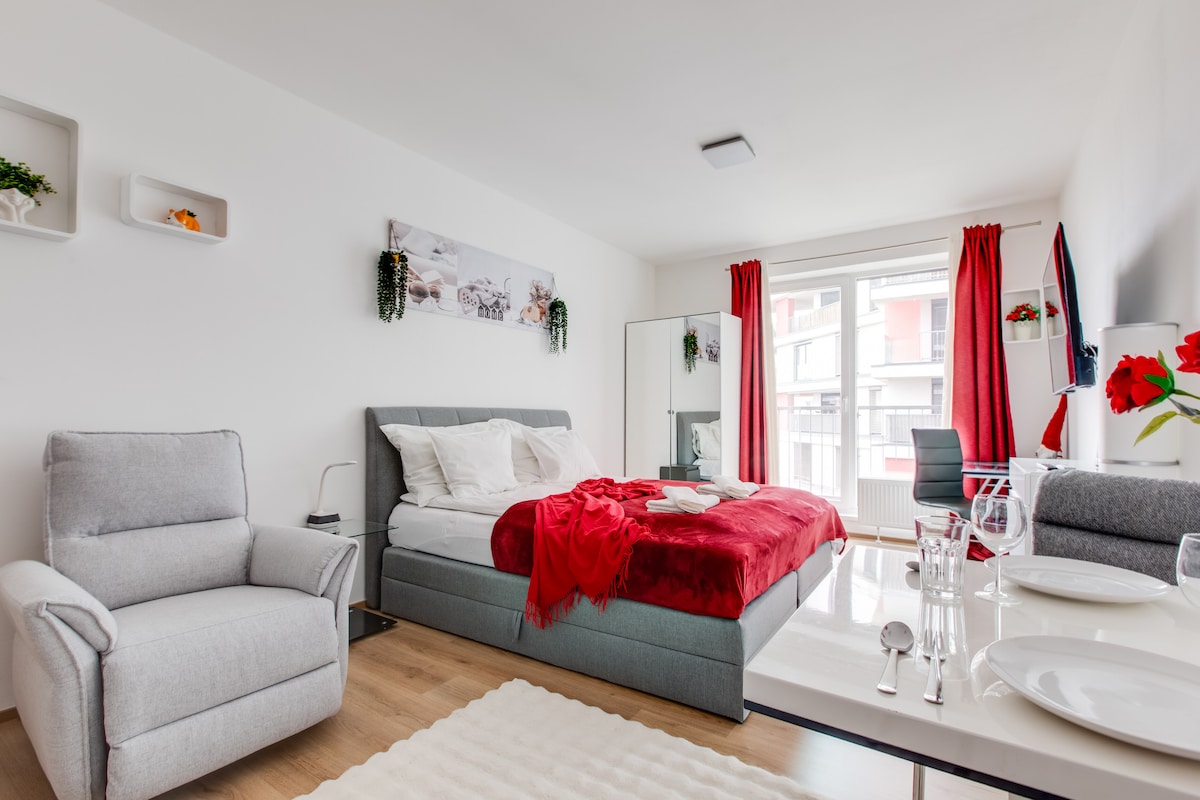 Modern Studio Apartment with Balcony, Free Parking