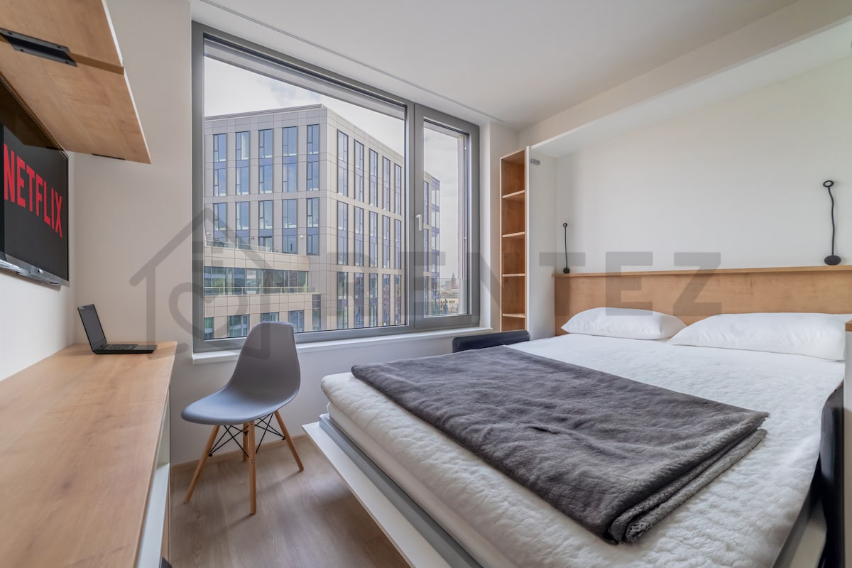 Studio moderne et lumineux d'une chambre (environ 31 m²) situé dans le luxueux quartier de Waltrovka à Prague 5. L'appartement est entièrement équipé, avec une terrasse privée et un parking souterrain. Waltrovka offre de la verdure, des aires de jeux, des boutiques, des restaurants et des cafés, dont un Starbucks. C'est le choix parfait pour un séjour confortable dans un quartier moderne avec un excellent accès au centre-ville de Prague. Le métro (ligne « B ») est à 5 min. à pied.