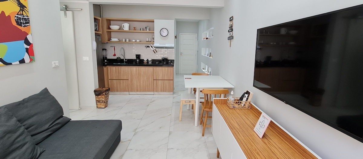 Appartement de style bohème chic, sur la plage de Copacabana ! - Lit Queen, canapé convertible, table à manger, climatisation et espace pour le bureau à domicile (Wifi 300 Mbit/s). Cuisine avec cuisinière, réfrigérateur, four, micro-ondes, mixeur, cafetière, presse-agrumes, machine à sandwich, casseroles, ustensiles de cuisine, divers livres, guitare et télévision avec applications. - Marché et pharmacie sous l'immeuble, restaurants et commerces autour de l'appartement. - Aéroport à 8,3 km. - Cristo Redentor à 11,5 km - Pão de Açúcar à 2,8 km