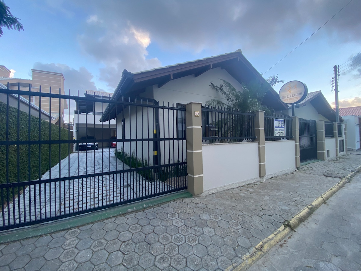 Votre famille sera proche de tout en restant dans cet endroit bien situé. La maison est située sur la plage de Bombas, dispose de 2 suites, cuisine avec ustensiles, purificateur d'eau, micro-ondes, réfrigérateur Frost Free, entre autres, salon avec Smartv et Gaming Hub, environnements climatisés, murée avec portail haut. Rue résidentielle calme mais autour de vous, vous aurez des bars, des restaurants, des supermarchés, une station-service, etc. Environ 10 à 15 minutes à pied de la plage. Nous sommes Pet Friendly.