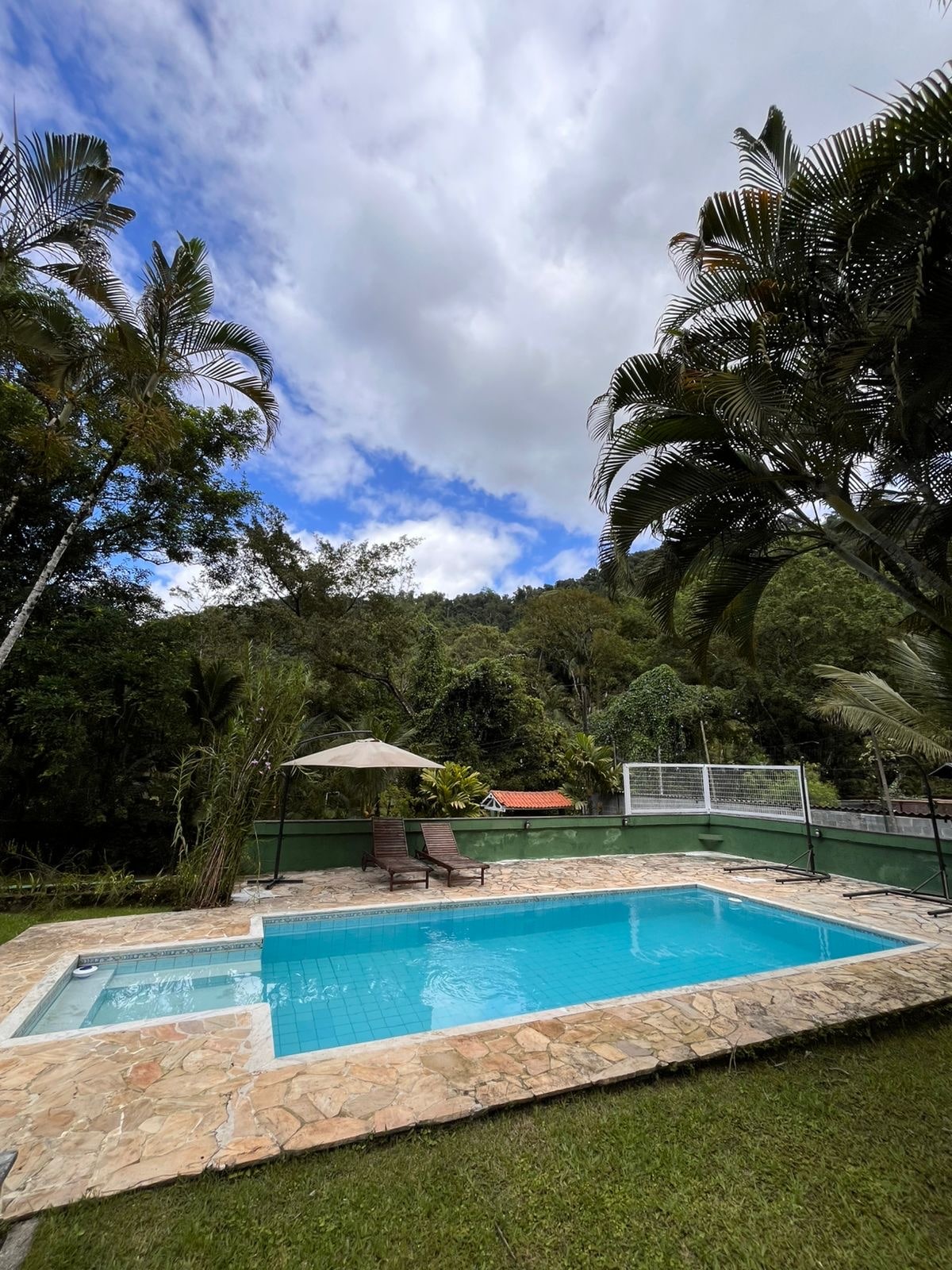 #Chácara com maior número de avaliações de Angra# Duas piscinas- uma climatizada e outra com água natural. Estacionamento privado para até 05 carros. Visual de montanha e cachoeira. Sauna à vapor com visual para cachoeira. Campo de futebol, sala de jogos, ping pong, sinuca, totó, mesa de carteado, TV. Split e ducha a gás em todas as 4 suítes. Churrasqueira, cervejeira e Frezer.Mercado próximo. Temos gerador de energia elétrica caso a rede pública caia. 15 min do Mar de Angra e próximo a Br-101.