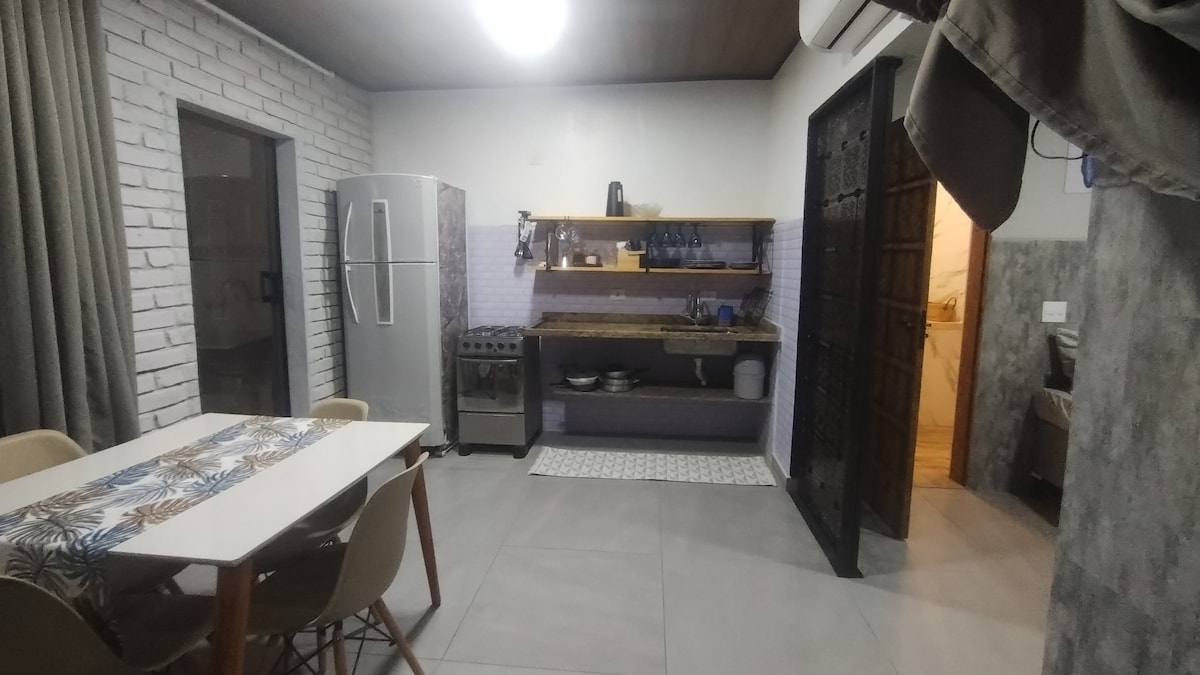 Esse apartamento térreo é ideal para família,com uma cama de casal padrão e uma cama beliche no mesmo quarto. Na cozinha uma mesa para refeições . O quintal é próprio privativo ,rede e churrasqueira,uma mesa para tomar café da manhã,entrada independente. A cozinha possue refrigerador duplex,fogão tradicional com forno de 4 bocas ,ideal para estadias mais longas todos os utensílios. o valor se refere a 4 hóspedes ,solicite valor reduzido no caso de 2 hóspedes