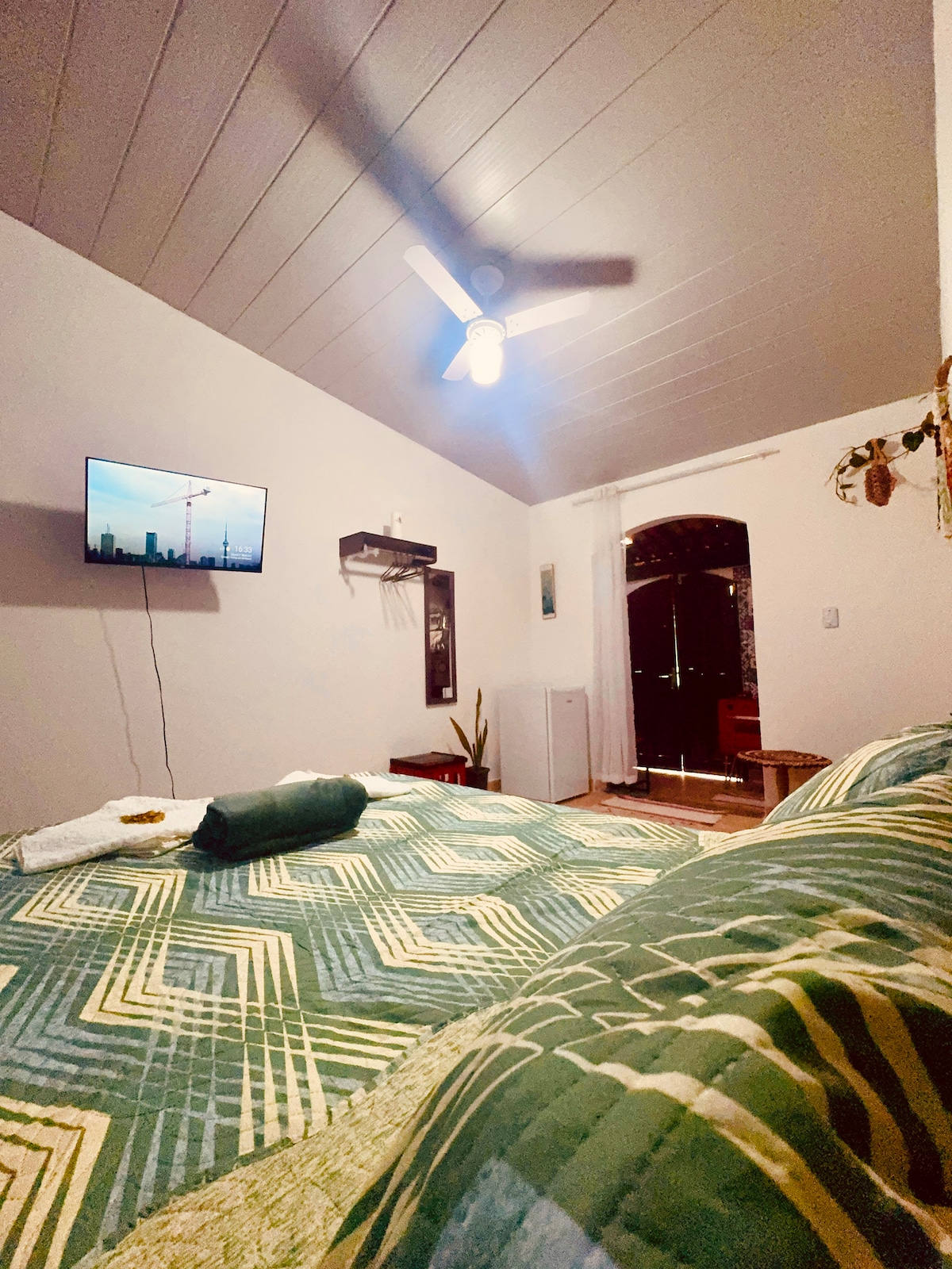 A melhor localização!! Central e a pouco passos da praia do Abraão. Suíte com cozinha, área externa com chuveiro e churrasqueira, tudo privativo. Imperdível!!! TV, WI-FI, 1 cama casal e 1 cama solteiro super aconchegantes (fornecemos roupa de cama e banho) AR condicionado split inverter e ventilador de teto. A entrada é individual . Ideal para casal e/ou casal com filho devido ao espaço circulante do dormitório. Perfeito para relaxar e aproveitar o que a Ilha Grande tem de melhor.