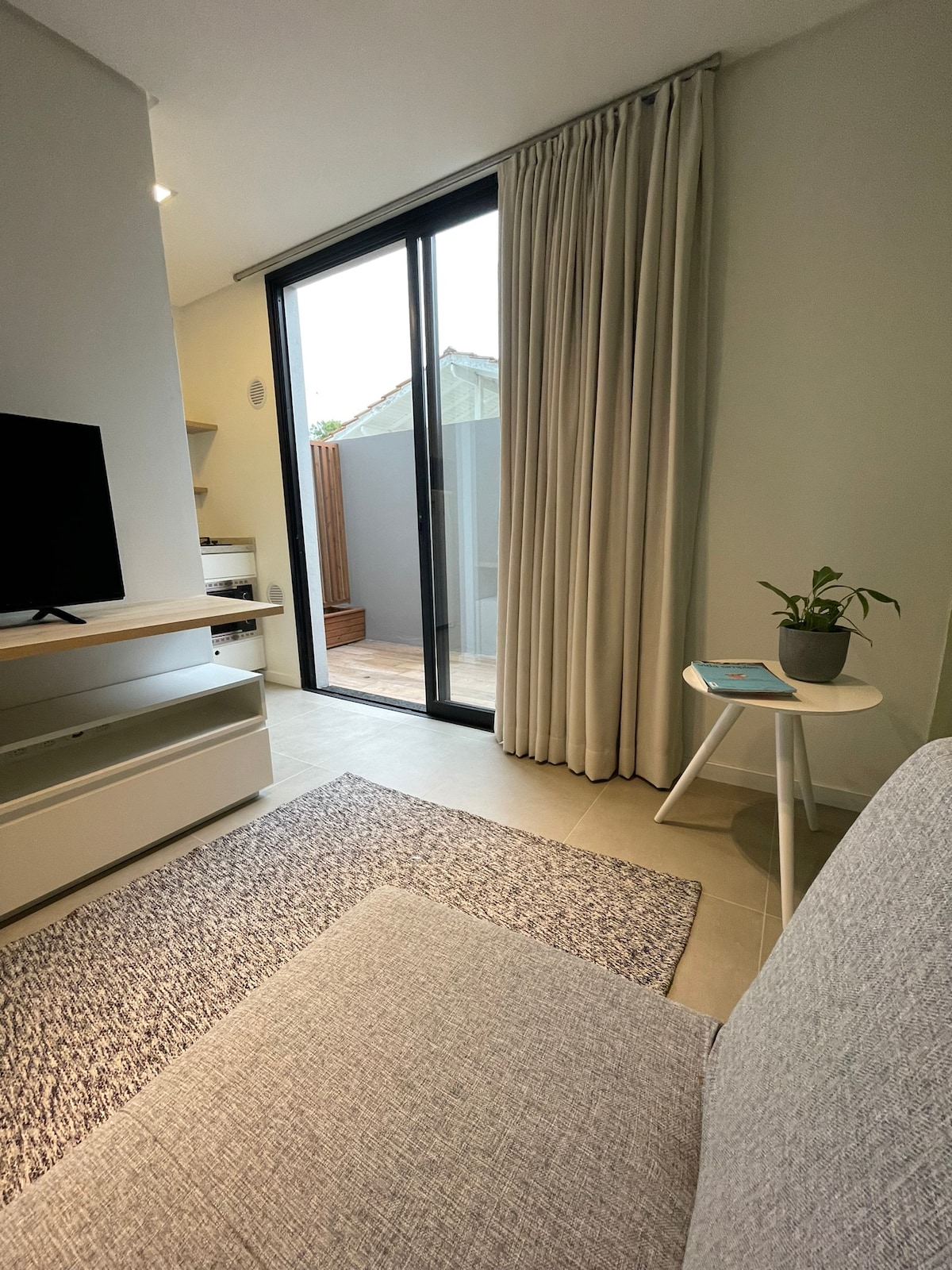 Seule tiny house à Jurerê Internacional, construite avec un système scandinave - murs et vitres avec isolation thermique et acoustique. Design minimaliste et espace de jardin avec terrasse et jacuzzi chauffé. La maison a 40 mètres carrés entièrement équipée, salon avec cuisine intégrée, salle de bains et chambre.. climatisation chaud et froid et un espace de loisirs entièrement clôturé et séparé de la maison principale de 150m2, l'accès à la maison est par un portail latéral totalement séparé de la maison principale -super privé
