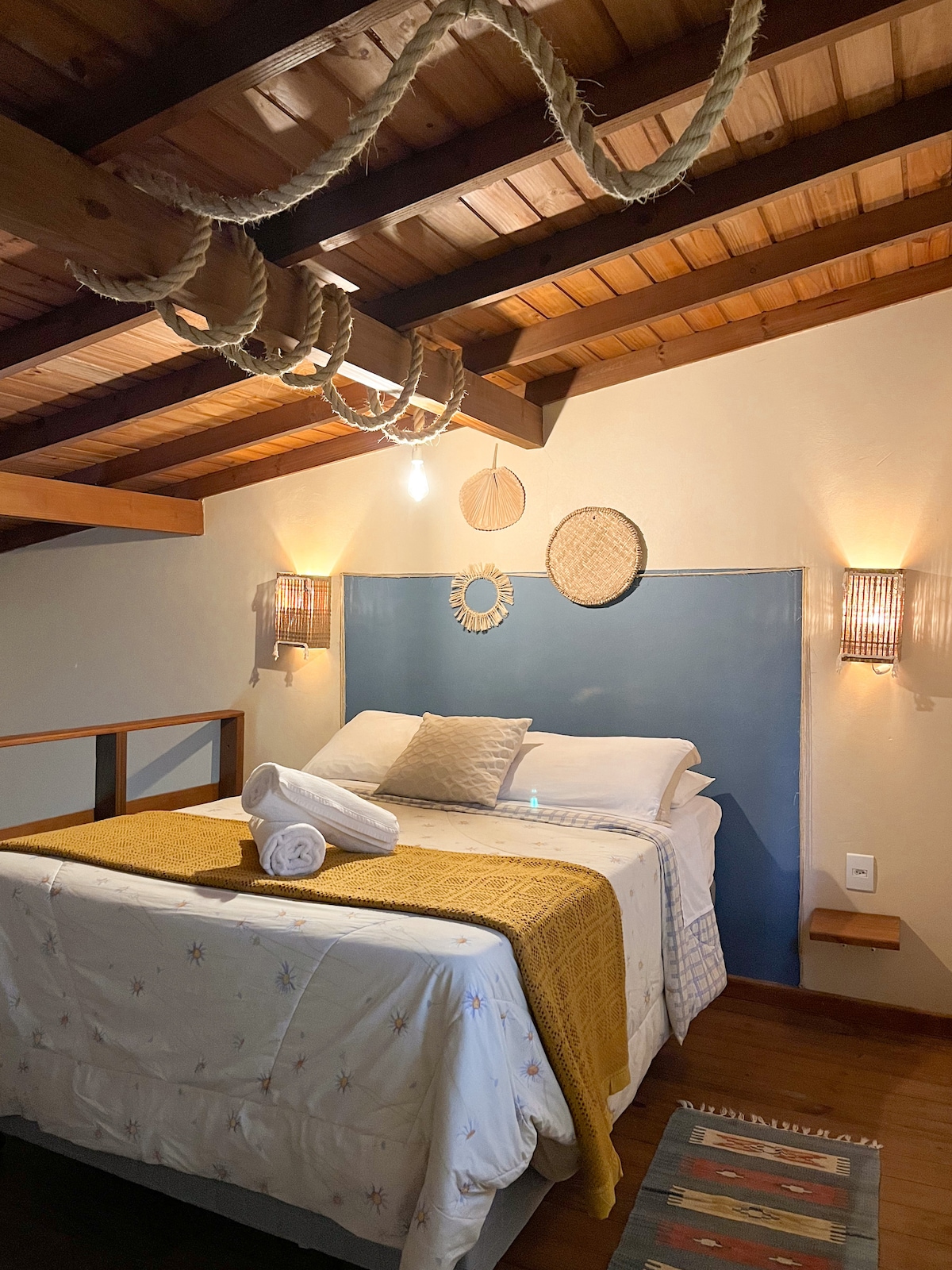 Na Cabana Vermelha, você viverá uma experiência de conexão total com a natureza. Imagine acordar ao som dos pássaros e saborear um café na varanda, rodeado por árvores e o frescor da manhã. O espaço está localizado no Condomínio Maranata, com acesso exclusivo à Lagoa de Ibiraquera, oferecendo um pôr do sol deslumbrante. Além disso, está em frente à SURFLAND BRASIL. Estamos a apenas 5 minutos de carro da Praia do Ouvidor e Praia Rosa Norte.