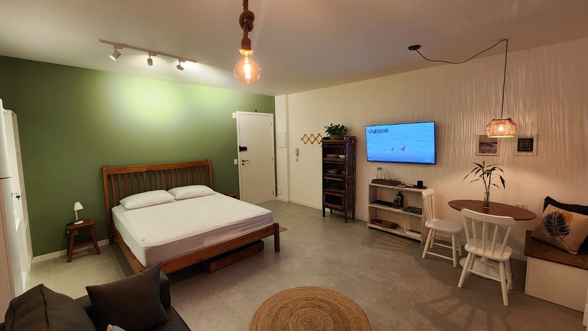 Charmants studios indépendants sur la belle plage de Prumirim. Entrée indépendante, patio privé, cuisine entièrement équipée, lit queen size de haute qualité, salon confortable. Le tout conçu avec qualité, confort et style. Grandes fenêtres panoramiques qui vous donneront l'impression d'être au milieu des arbres! C'est un endroit magique pour ceux qui recherchent une escapade romantique au bord de la mer en se connectant à la nature sans compromettre leur confort. Tout est méticuleusement propre, désinfecté et sûr !