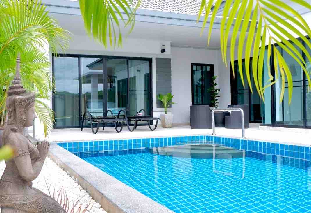 Une villa avec piscine privée dans une ambiance Palm Springs. Située au centre de la région de Khao Tao. Khao Tao est un village côtier situé juste au sud de Hua Hin, en Thaïlande. Non loin du centre de Hua Hin mais assez loin pour éviter l'agitation de la ville. Il offre une retraite paisible pour ceux qui recherchent une expérience plus décontractée et intime. Paisible ne signifie pas un manque de services et d'équipements. Il y a des dépanneurs, des blanchisseries, une laverie et des restaurants locaux dans le quartier.