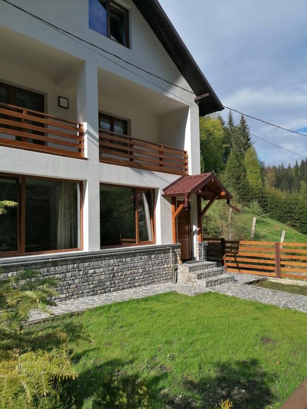 Située dans un endroit calme, à environ 400 m de la pente de Bradul, la propriété fait partie d'un complexe de villas avec parking, espace barbecue avec table et chaises. La villa dispose d'un certain nombre de 7 chambres : 1er étage - 3 chambres, 2e étage - 3 chambres, grenier - 1 chambre. Chaque chambre a sa propre salle de bain avec douche, télévision, sèche-cheveux. Le rez-de-chaussée de la villa est un espace ouvert et comprend un espace repas, un salon avec un foyer et des toilettes. Il s'agit d'une cuisine entièrement équipée, d'un coin repas et de toilettes.