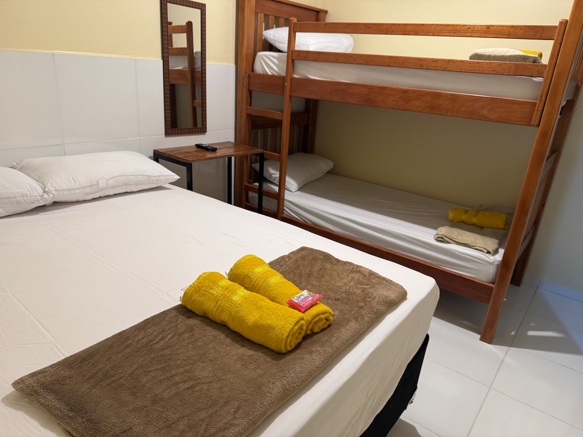 Conforto e praticidade em um só lugar! Nossa acomodação conta com Wi-Fi gratuito, ar-condicionado e uma cozinha completa equipada com todos os utensílios domésticos para preparar suas refeições com facilidade. O quarto oferece conforto para todos, com uma cama de casal, uma cama de solteiro e uma rede, ideal para casais, amigos ou pequenas famílias. O banheiro é aconchegante e garante praticidade e bem-estar durante toda a estadia. 🏡 Tudo pensado para que você se sinta em casa!