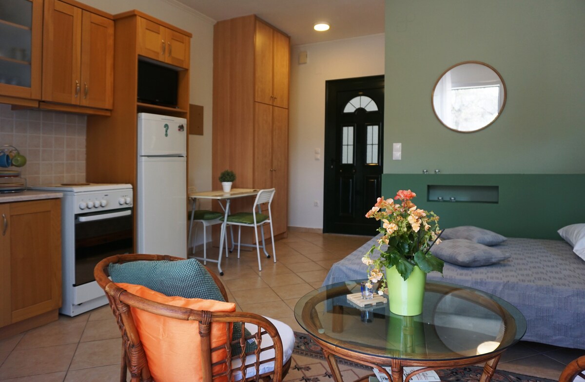 Ave room est un studio confortable au rez-de-chaussée avec son propre jardin extérieur, qui offre le confort et tous les équipements dont vous aurez besoin. Il est situé dans un beau quartier à distance de marche du centre-ville. L'espace est rénové, fonctionnel ! > À 15 minutes à pied du centre historique de Préveza ! > Jardin et barbecue pour les nuits d'été ! > Supérette et boulangerie à côté de la chambre Ave ! > Heures d'arrivée et de départ flexibles !