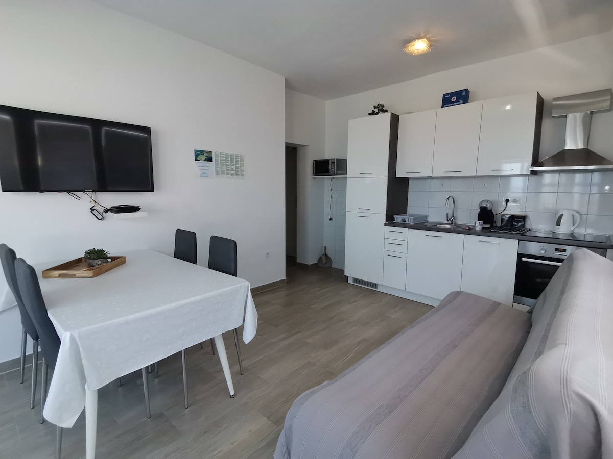 Situé dans le centre de Primosten, à une minute à pied de la plage la plus proche et à quelques minutes de l'église,cet appartement avec une vue magnifique propose un hébergement indépendant avec climatisation, télévision par satellite, connexion Wi-Fi gratuite.L' établissement propose également un parking gratuit.Une épicerie, des restaurants et des bars se trouvent à moins de 300 m. La gare routière desservant les villes historiques de Zadar,Sibenik,Trogir,Split et Dubrovnik est située à 500 m de l'appartement.L' aéroport de Split est situé à 40 km.