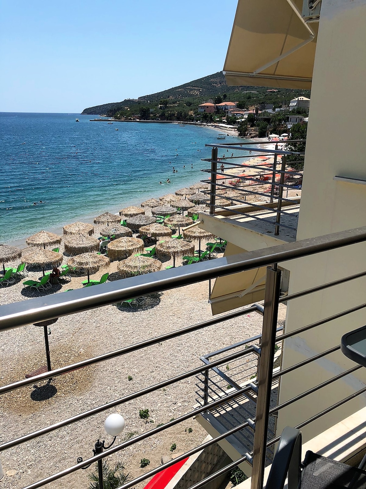 Notre appartement est un penthouse en bord de mer nouvellement construit qui offre une vue imprenable sur la mer et à distance de marche de la plage. Il peut accueillir jusqu'à 4 personnes et il est parfait pour une famille/un couple. L'appartement dispose d'un salon ouvert avec cheminée, d'une cuisine entièrement équipée avec lave-vaisselle, lave-linge et sèche-linge, et d'une salle de bains entièrement équipée. Un escalier en bois mène à la chambre qui dispose d'un lit Queen Size et d'un tiroir. L'espace de vie s'ouvre sur une immense véranda en bord de mer.