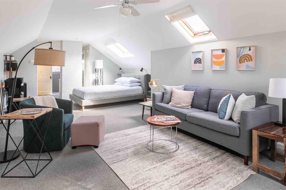 Détendez-vous, travaillez et relaxez dans « The Treehouse », notre studio serein et lumineux niché au milieu des arbres. Parfaitement situé dans le Rumford historique, RI, il se trouve à seulement 3 miles de Brown, RISD et Johnson & Wales, et à 5 miles du Providence College. Profitez d'un accès rapide à l'East Side de Providence, aux plages de Newport et de Little Compton. Idéalement situé à proximité d'Amtrak, des lignes de bus et de l'aéroport, c'est l'endroit idéal pour explorer la Nouvelle-Angleterre ou visiter les universités de la région.