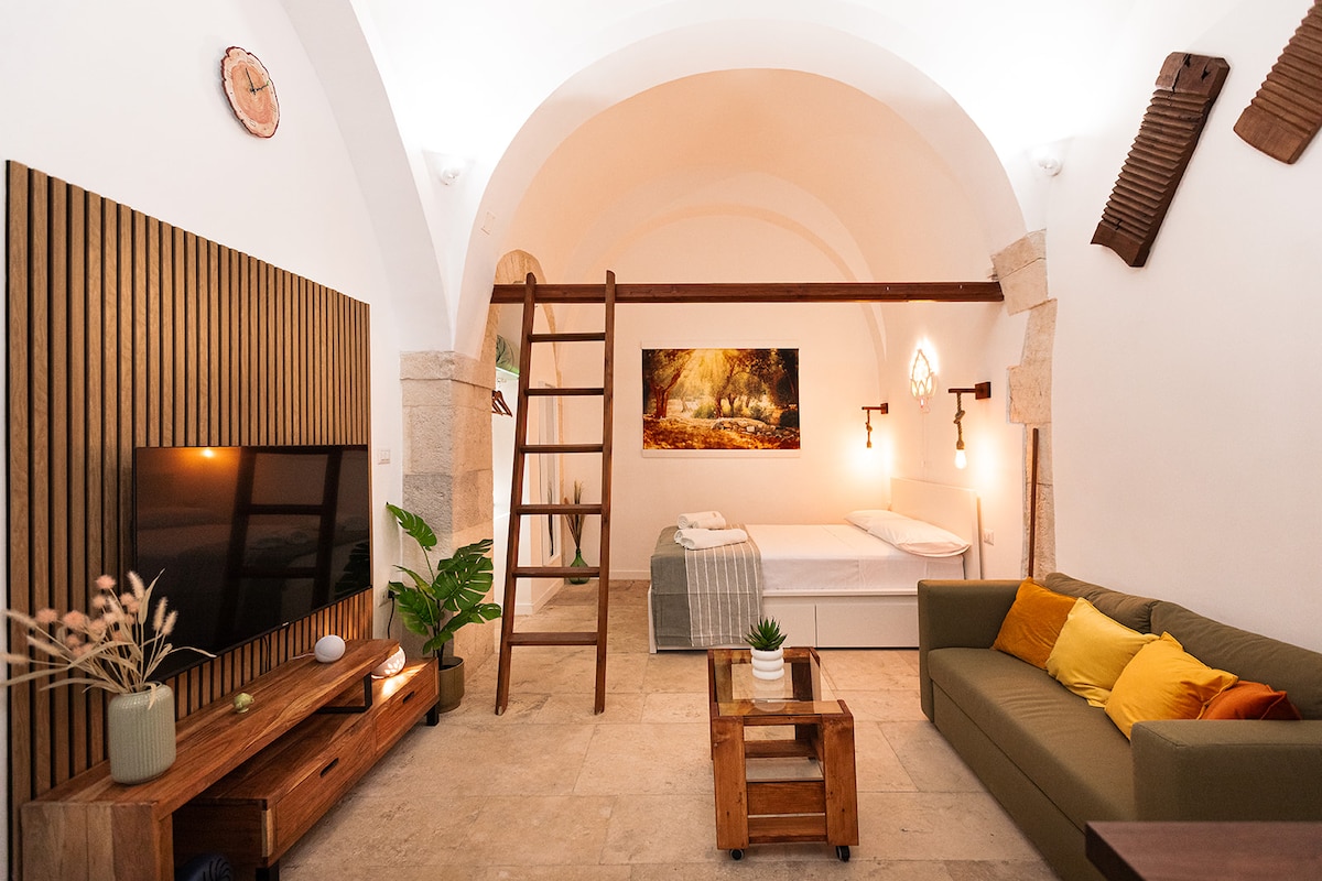 L'appartement « Aduepassi » est situé dans le centre de Trani, vraiment à deux pas des principaux lieux d'intérêt de la ville et offre la commodité d'un appartement entier avec les services d'un « hôtel ». Décoré dans un style contemporain et des détails shabby chic, il est équipé de tout le confort. Une grande terrasse commune et un coin salon raffiné où vous pourrez prendre votre petit déjeuner confortablement seront à votre disposition.