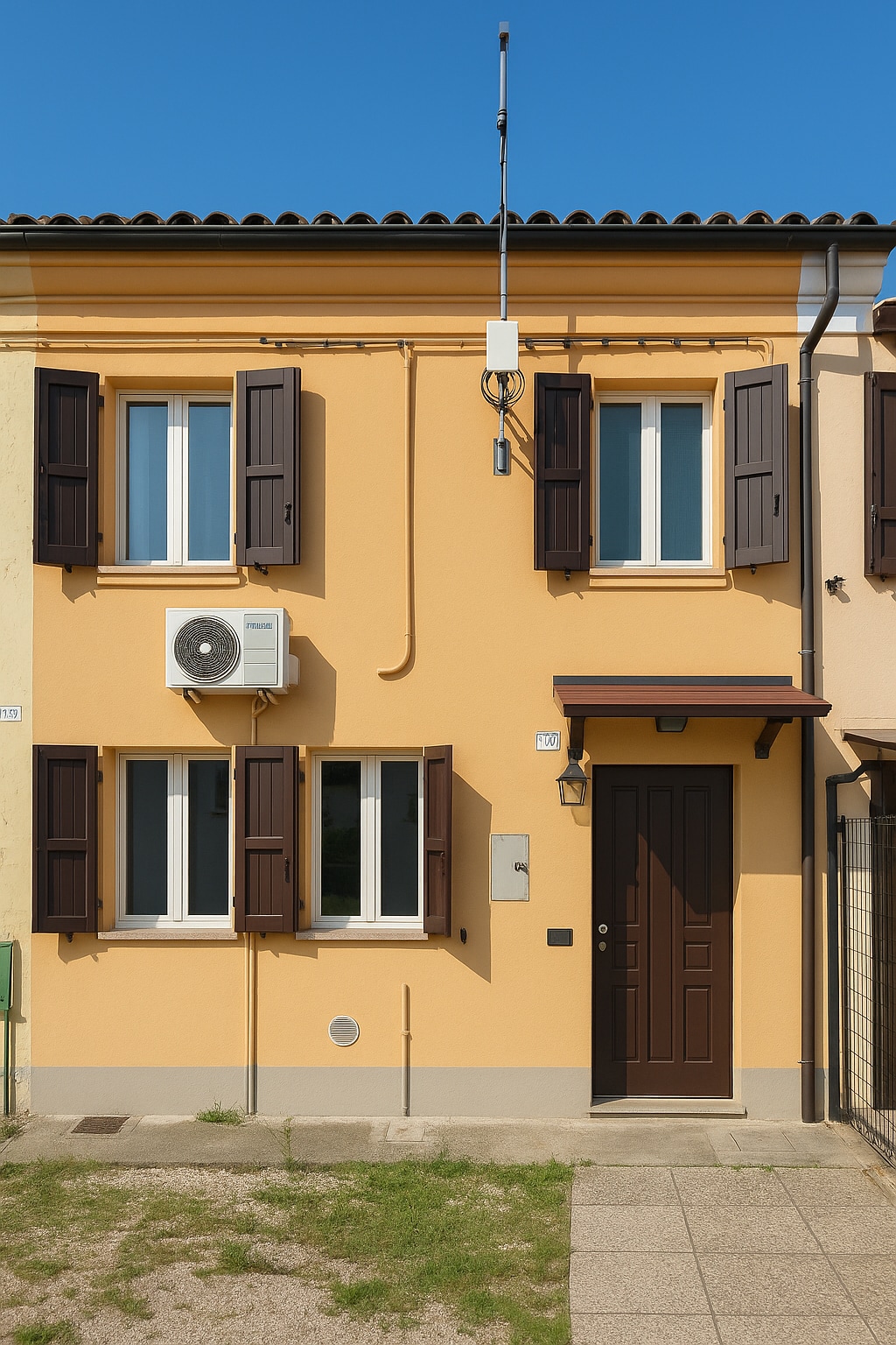Maison mitoyenne sur deux étages entièrement rénovée. Au rez-de-chaussée salle, cuisine, grand porche, grand jardin privé ; au deuxième étage deux chambres, salle de bains, équipée de chauffage. Une place de parking dans la cour intérieure. Environnement idéal pour la détente, confortable et chaleureux. Immergée dans la verdure de la pinède, à 500 m de la mer et à 700 m du centre piétonnier de Lido degli Estensi. Possibilité d'excursions dans les vallées, les marais salants, le delta du Pô et les promenades en bord de mer. Comacchio (9 km) Ravenne (30 km).