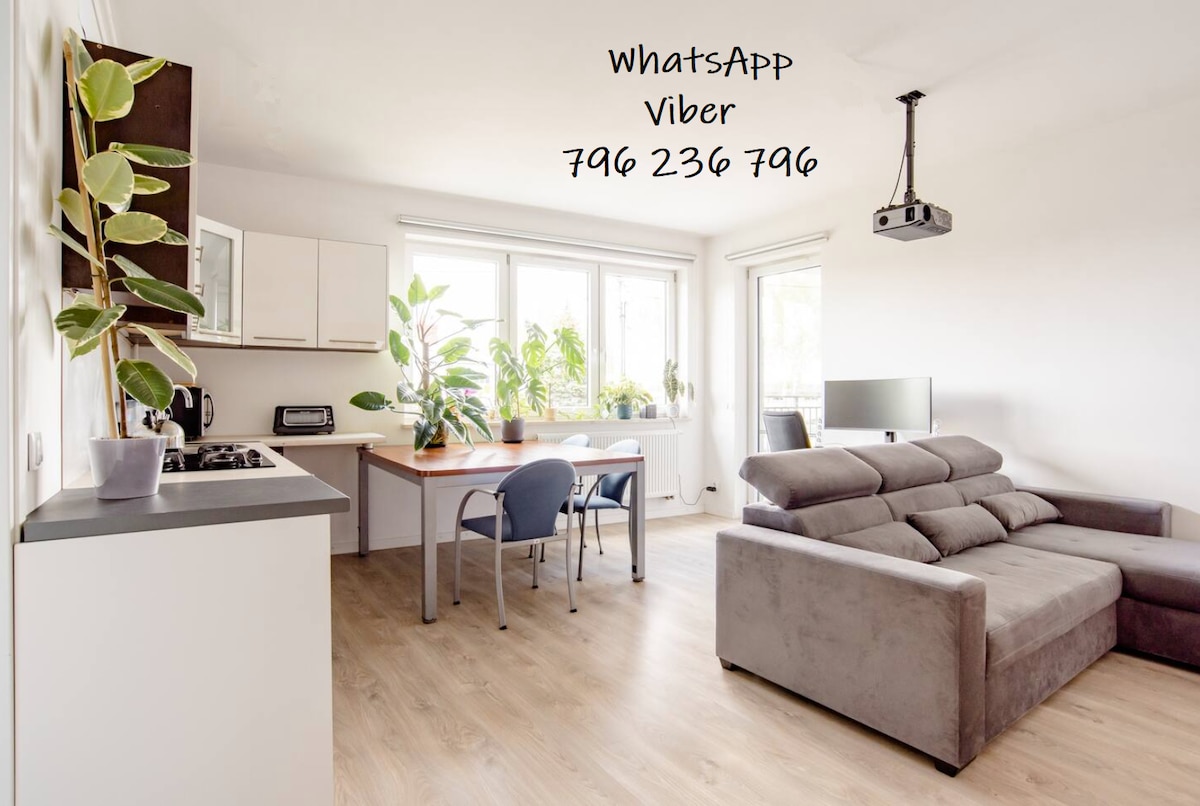 Plongez dans la lumière du soleil, le calme et le confort d'une boutique. Cet appartement de 2 chambres au dernier étage se trouve dans un tout nouveau bâtiment dans le paisible Ursus, à seulement 20 minutes du centre-ville de Varsovie par SKM. Sirotez un café sur le balcon, explorez pendant la journée, puis détendez-vous avec un film dans votre home cinéma privé. Avec des intérieurs design, une machine à laver et un parking sécurisé, chaque détail est conçu pour la facilité, le style et la tranquillité d'esprit. Que vous soyez en voyage d'affaires, de détente ou de retrouvailles, vous vous sentirez chez vous dès votre arrivée.