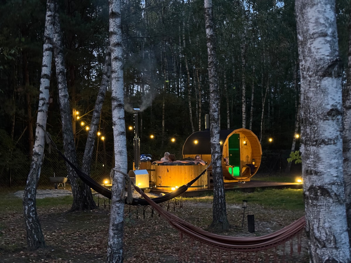 Faites une pause et détendez-vous dans ce havre de paix. Louez une cabane dans la campagne mazovienne près de la rivière Wkra. C'est un endroit idéal pour les personnes actives : la possibilité de faire du vélo, de courir sur le gravier, de faire du kayak. Si vous préférez passer moins de temps, Leonówka offre aux voyageurs la paix dans un hamac qui interfère avec les grenouilles. Pour les amateurs de détente, nous proposons un jacuzzi et un sauna à bois. Après une telle détente, vous pourrez vous asseoir près de la cheminée atmosphérique.