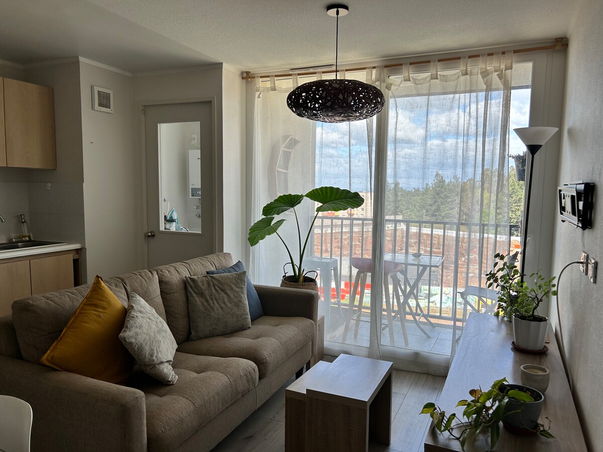 Spectaculaire et confortable appartement pour 3 personnes situé dans le meilleur quartier de Temuco, en face de Starbucks et à quelques pas des supermarchés Jumbo et Líder, des pharmacies, de Sodimac et des restaurants.