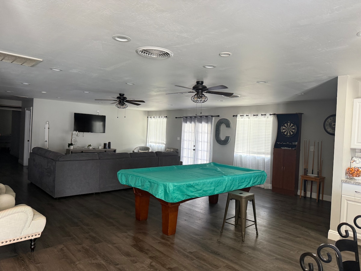 Oubliez vos soucis dans cet espace spacieux et serein. Belle maison près de plusieurs centres commerciaux, restaurants et supermarchés. Quartier calme, vous pouvez y passer une bonne nuit ou un bon week-end. Cette maison dispose de 4 chambres et de 2 toilettes. Vous pouvez trouver tout ce dont vous avez besoin pour une nuit ou plus, vous pouvez travailler à domicile ou passer du temps en famille. La maison dispose d'un système d'adoucisseur d'eau, d'un lit king size et de trois lits queen size et d'une table de billard.