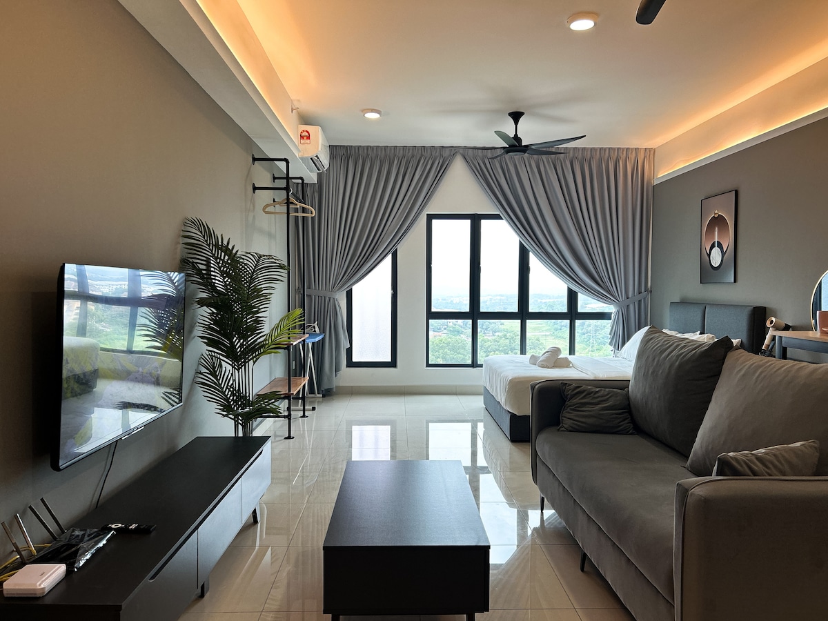 Simplifiez-vous la vie dans ce logement paisible et central. Un studio confortable avec un environnement propre. À distance de marche À 3 min de Setia City Mall/Aeon/Setia City Convention Centre