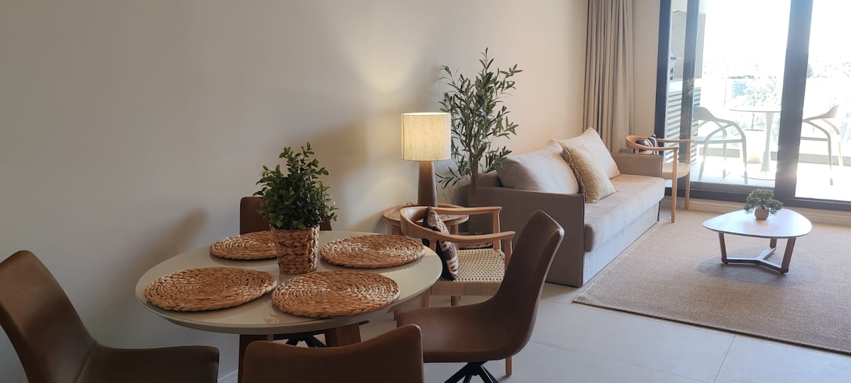 The Nordic style of this apartment allows you to enjoy the sea views in an atmosphere of complete calm and comfort. The building's amenities will make your stay perfect: security, a gym, and two swimming pools; one an infinity pool and the other heated. The building is located in a prime and strategic area, just 100 meters from bakeries, supermarkets, pharmacies, kiosks, banks, currency exchange offices, and countless restaurants, cafes, and delivery services.