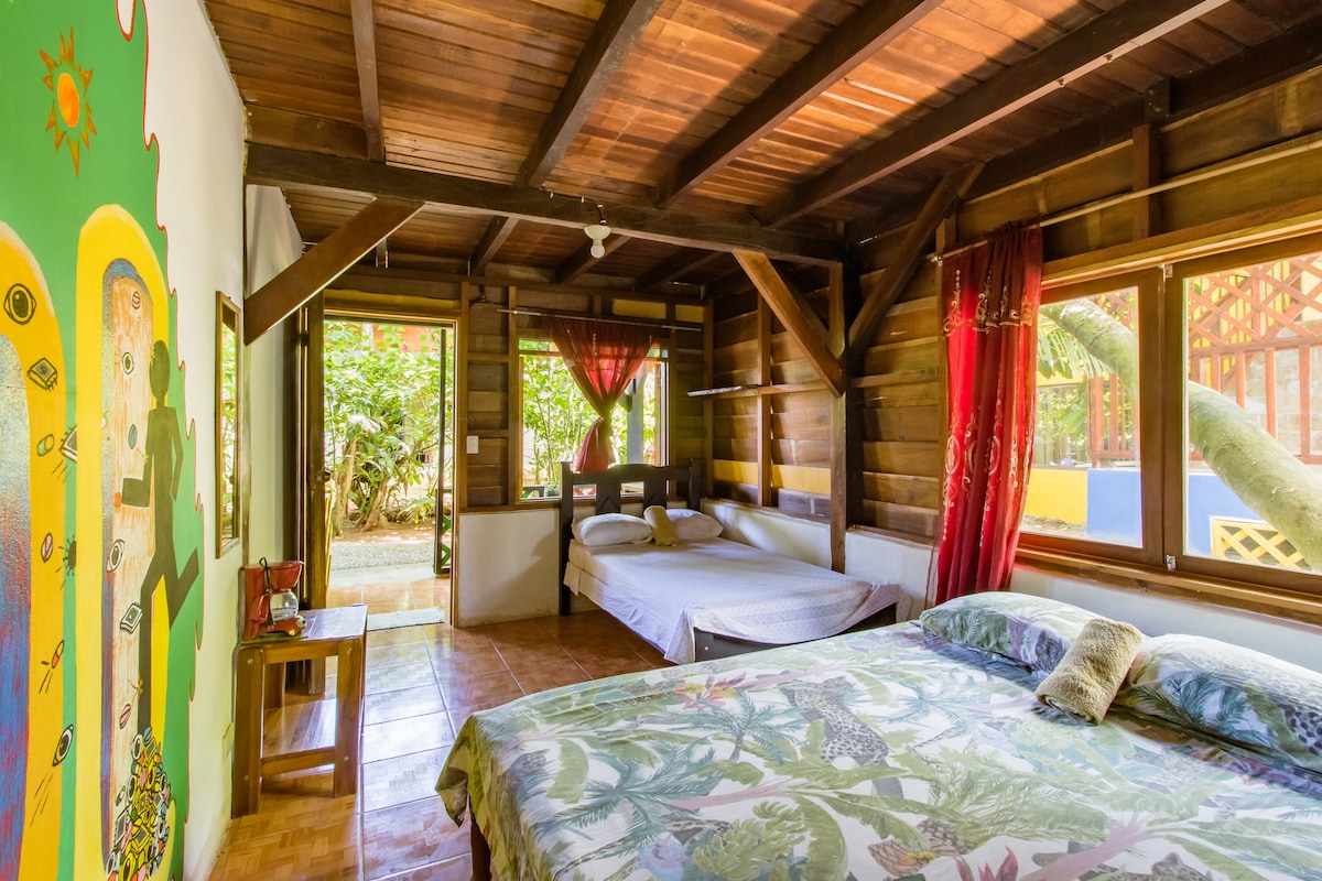 Le meilleur endroit pour se reposer à Caribe Sur, parfait pour un couple, rustique et romantique, situé près du refuge faunique, est un chalet rustique confortable entouré par la nature. Vous pourriez avoir des contacts avec la flore et la faune locales. Un endroit idéal pour se reposer. Nous avons eu toutes sortes d'animaux sauvages, même un crocodile dans le jardin, donc ça va être une aventure tropicale. La maison est ouverte, pas de verre ni de fenêtres, mais des stores et des moustiquaires, mais les araignées et les animaux peuvent entrer, soyez conscient. Cuisine bien équipée, pas de machine à laver.