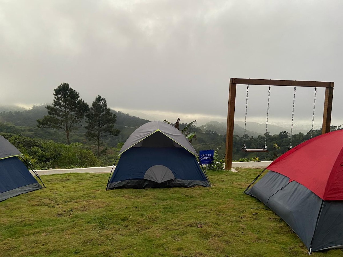 Abraza las nubes a 920M de altura, la vista es la protagonista de este paraíso en las montañas. El clima es exquisito y la naturaleza virgen adorna todo el espacio. Podrás recrearte en nuestra hamaca flotante gigante o hacerte fotos geniales en el columpio con vista a todo el Valle del Cibao, además puedes disfrutar de una velada con amigos o familiares en nuestra área de fogata con vista a la ciudad. En fin es un paraíso natural en las montañas para desconectarse y conectar con la naturaleza.