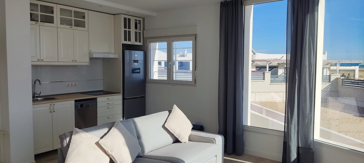 La mer en face de votre fenêtre. Je loue la partie la plus spéciale de ma maison, la partie avant qui donne directement sur la plage. Cet hébergement unique est unique et super exclusif, il borde le Coto Doñana (les soi-disant palos) en face au loin, vous pouvez voir Sanlucar, Chipiona et Cadix. Une ancienne cabane de pêcheurs qui était aussi un bar a été rénovée. Elle a des vues panoramiques, des promenades interminables. Couches de soleil uniques et incomparables.VFT/HU/02359 Une place de parking payant est disponible sur la propriété.