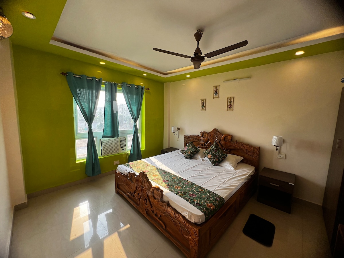 Bienvenue dans notre élégant appartement 2 BHK, parfait pour les séjours en famille ! Profitez de deux lits king size IKEA confortables et d'un canapé-lit queen size dans des chambres entièrement climatisées, y compris un séjour spacieux. La cuisine végétarienne ouverte et pure est entièrement équipée pour vos besoins. Nous sommes à seulement 600 m de la plage Blue Flag et à 1,5 km du temple Sri Jagannath, offrant une intimité et un confort idéaux pour des séjours longue durée. Situé sur de larges routes bien entretenues, découvrez le mélange parfait de détente et de commodité !