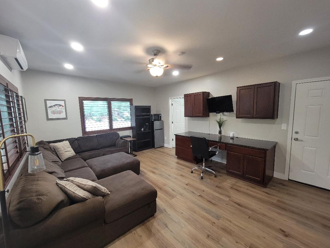 Studio récemment rénové, beau et lumineux, situé sur une propriété unique de 3000 m² près de l'Université de l'Arizona. Ce petit chalet (220 pieds carrés) et charmant était à l'origine la station de pompage d'eau (dans les années 1940). Les sols en carreaux de béton, les murs en briques, les arbres d'ombrage et les décorations de jardin ajoutent au charme de cette escapade tranquille. Le chalet dispose d'une douche à l'italienne et d'un coin cuisine composé d'un réfrigérateur et d'un micro-ondes et est aménagé pour vous permettre beaucoup d'intimité. Emplacement idéal avec accès facile au quartier des divertissements de Tucson.