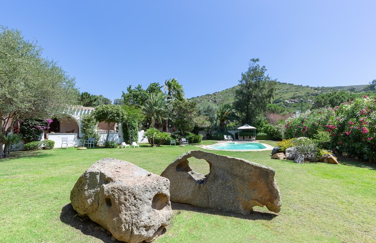 Detached house in semi-detached house. It is 600 meters distant from a cristal clear sea. It has also a panoramic view and a small private swimming pool(from June to October) The villa is made up of a large living room with a chimney and some windows through which it is possible to enjoy the view on the sea. It provides also a kitchenette and a dishwasher, two rooms, a bathroom with a shower and a washing machine. It is located 20 km from Cagliari and very close to other wonderful beaches .