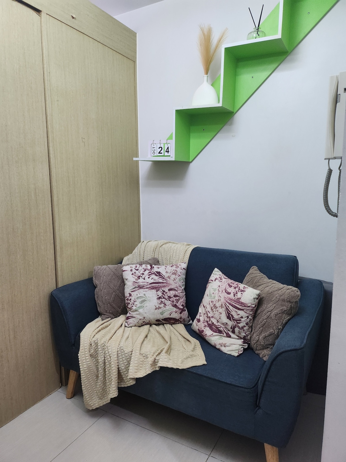 Ce confortable loft d'une chambre à TWIN OAKS PLACE est situé au centre du quartier Greenfield à Mandaluyong, juste en face du Shangrila Plaza et à quelques pas de SM MEGAMALL. Entièrement équipé avec vos essentiels modernes tels que le Wi-Fi haut débit, Netflix Premium et des ustensiles de cuisine complets. Cette propriété est parfaite pour les couples, les petites familles et même les voyageurs d'affaires. Avec notre lit Queen Size et notre matelas Queen Size supplémentaire, jusqu'à 4 personnes peuvent être hébergées à tout moment.