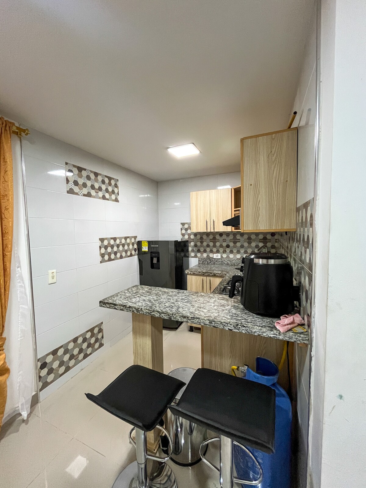 Espectacular apartamento con acabados de calidad y mobiliario moderno, amplia zona social, cocina totalmente equipada y dos confortables habitaciones con baño, WiFi de alta velocidad y smart tv de 55" y aire acondicionado en todas las áreas te brindarán tranquilidad y confort durante tu estancia en Quibdó. Ubicado en el corazón de la ciudad, zona segura y a cinco minutos de supermercados, restaurantes y gimnasios, nuestro alojamiento te ofrece un equilibrio perfecto entre comodidad y estilo.