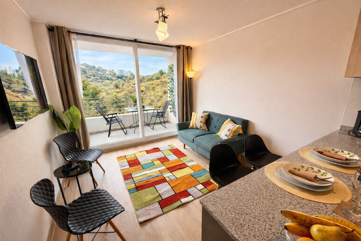 Ce bel appartement moderne est situé dans un quartier privilégié de Villa Alemana, à quelques pas de la station de métro Las Américas et de la rocade urbaine. Cela en fait l'endroit idéal pour explorer les attractions de la région, car vous pouvez rejoindre le centre de Viña del Mar, Valparaíso et Limache en seulement 20-30 minutes en métro. Si vous cherchez un endroit confortable et pratique pour rester, cet appartement est parfait pour vous. Réservez votre séjour dès aujourd'hui !