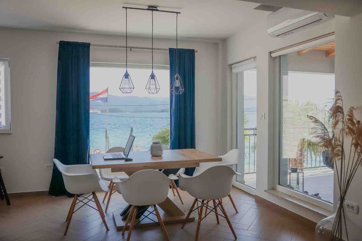 Profitez d'une vue imprenable sur la mer dans un petit village paisible. Cet appartement a accès à une plage privée qui est partagée par quelques autres personnes dans le bâtiment, mais qui n'est pas accessible à personne d'autre ou au public. Parfait pour les familles qui veulent s'amuser ensemble. Ou les couples à la recherche d'une jolie retraite croate. Ou même un groupe d'amis qui peuvent utiliser l'appartement comme base d'accueil tout en explorant Dubrovnik et Makarska à proximité.