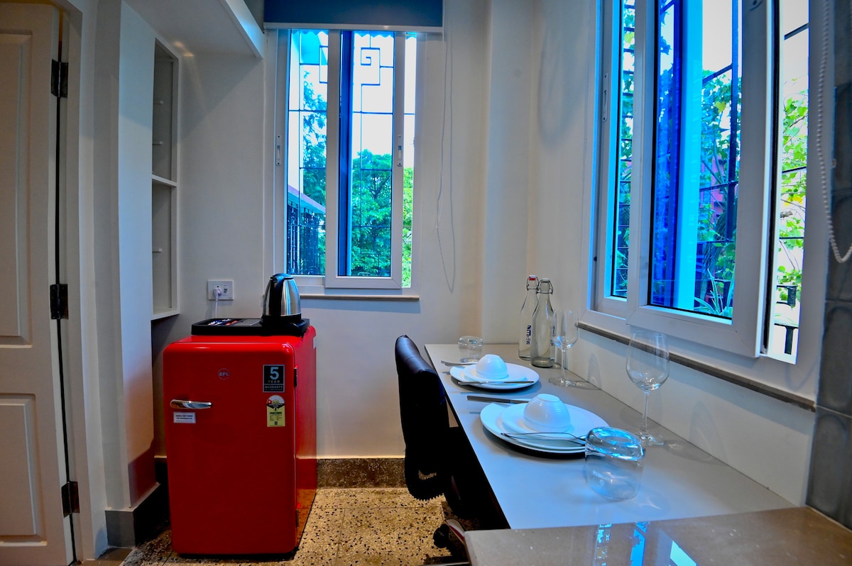 Vivez un séjour unique dans un charmant appartement au dernier étage du coworking et du café The Red Bari. Vivez dans un bâtiment patrimonial restauré et réaménagé avec des sensations authentiques de Calcutta et tout le confort des équipements modernes. Aéré, avec beaucoup de lumière naturelle des fenêtres et accès à la terrasse. À 2 min à pied du métro, très central au cœur de la ville. Accès ascenseur disponible jusqu'au 3e étage. Accès à un espace de travail dédié et à d'autres espaces communs.