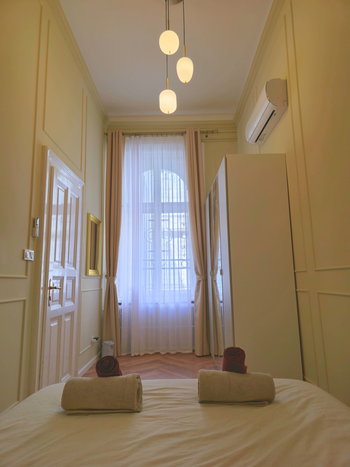 The stylish one bed huge 75sqm apartment has been fully renovated with stylish design in a mid-century beautiful house. The apartment is on the 3rd floor with an elevator in a very quiet area in the building. Located in one of the most fashionable areas of Budapest with city’s best bars, pubs, restaurants, museums, galleries, designer clothing boutiques, shops and historical architecture at your doorstep. The apartment has one bedroom, a living area, fully equipped kitchen and one bathroom.