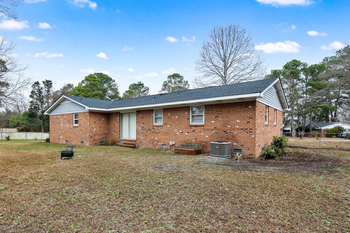 Découvrez votre retraite parfaite dans cette maison magnifiquement rénovée à Raeford ! Idéale pour les familles et les groupes, notre propriété spacieuse dispose de 3 chambres, 2 salles de bain et une chambre supplémentaire à l'étage. Profitez du confort d'un chez-soi avec une cuisine entièrement équipée, un salon ensoleillé et une grande cour arrière clôturée avec un porche grillagé. Notre emplacement central offre un accès facile à Southern Pines, Fort Bragg et Fayetteville, tout en offrant une oasis paisible et privée pour se détendre. Réservez dès maintenant pour une véritable expérience de maison loin de chez vous !