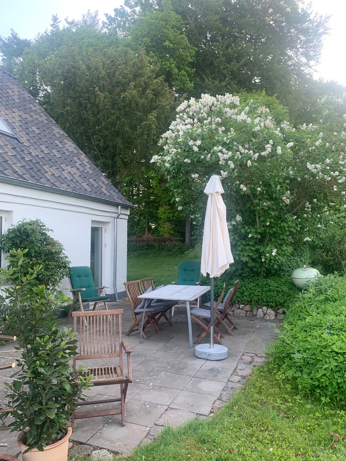 Maison confortable avec terrasse privée et accès à un grand jardin. Il y a un accès direct à la forêt, où vous pouvez profiter de Svendborgsund en 5 minutes à pied et 15 minutes à pied de la zone de baignade au détroit. La maison est située à 10 min. à vélo du centre de Svendborg. La maison est une maison indépendante, à côté de la maison principale, où vivent les hôtes. La maison dispose de deux chambres, d'une grande salle de bains et d'un salon avec une cuisine plus petite mais entièrement fonctionnelle. Télévision avec Apple TV. 5 min. à pied pour faire les courses, où vous pouvez recharger votre voiture électrique.