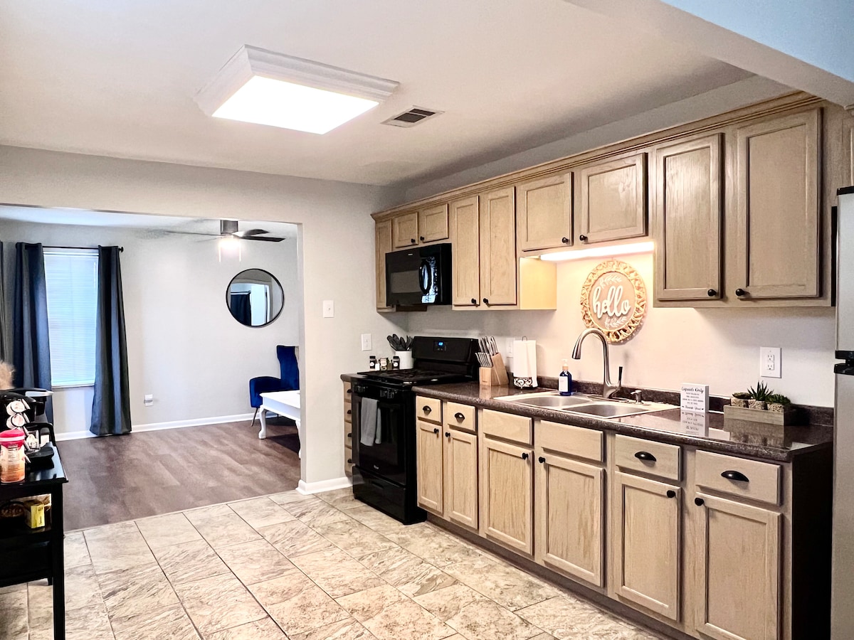 RÉDUCTIONS POUR SÉJOUR PROLONGÉ DISPONIBLES ! Infirmières en déplacement, travailleurs contractuels ou toute personne ayant besoin d'un logement de 1 semaine à 3 mois et plus, nous offrons des prix spéciaux de 10 à 35 % de réduction sur le total de votre séjour ! Idéalement situé juste à côté de Jackson St., cet appartement calme et paisible avec beaucoup de charme. C'est l'endroit idéal pour se détendre. Apportez le livre que vous vouliez lire pendant votre absence. Il y a une connexion Wi-Fi pour tous les appareils que vous apportez et pour les téléviseurs. Vous êtes à quelques minutes de tout ce que vous pourriez avoir besoin de faire !