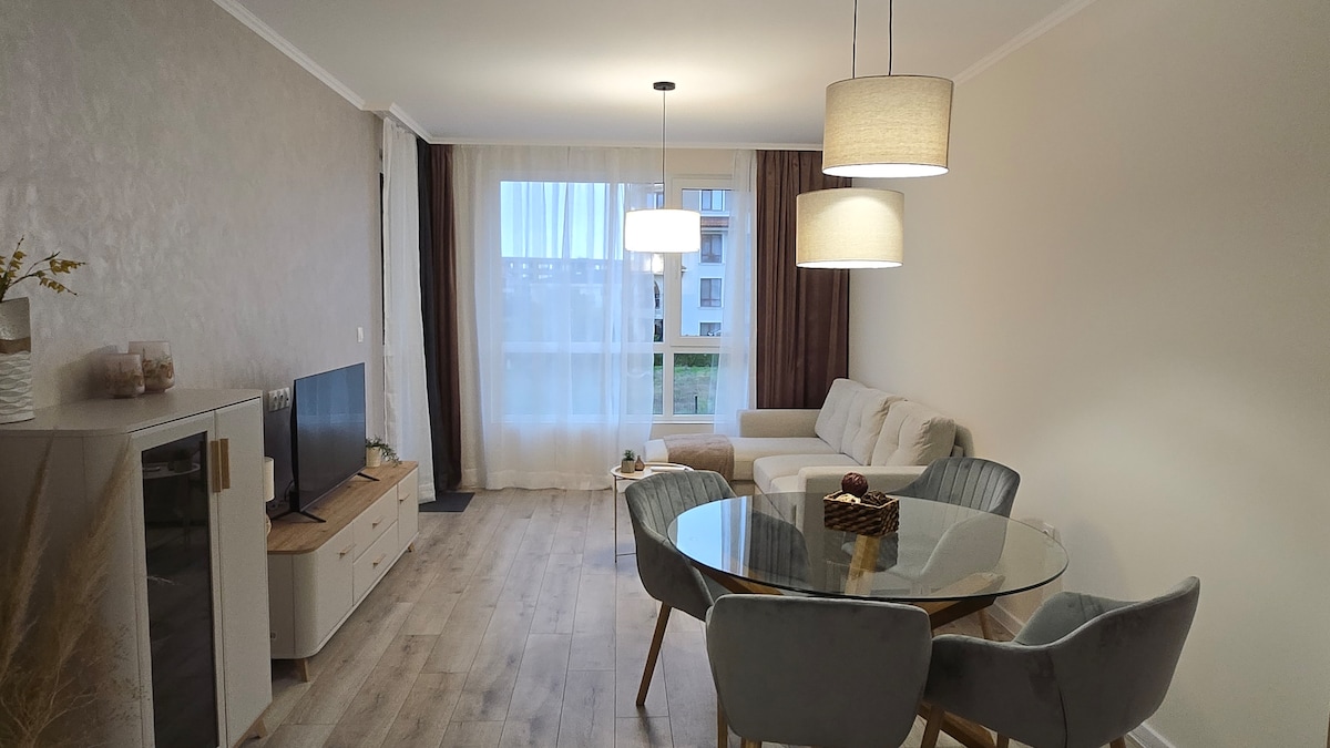 Luxury Apartment for Rent in Pomorie A stylish and fully furnished apartment located in the central part of the city, just a 5-minute walk from restaurants, cafés, and the city center. Enjoy comfort and convenience with all amenities: air conditioning, high-speed Wi-Fi, Smart TV, a fully equipped kitchen, a washing machine, and three balconies for your relaxation. Perfect for families, couples, or friends looking to soak up the sun, enjoy the beach, and unwind in total comfort.