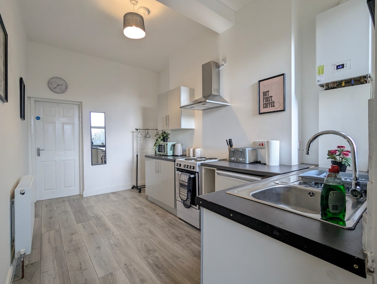 Appartement entièrement indépendant qui comprend une chambre double, un salon, une cuisine et une véranda. Entrée indépendante, parking, jardin. Idéal comme base pour un accès facile au centre-ville de Manchester. Ou pour ceux qui veulent découvrir la campagne, c'est encore une fois juste à côté. WIFI disponible. Idéal pour les voyageurs d'affaires ou ceux qui veulent juste faire une pause relaxante.