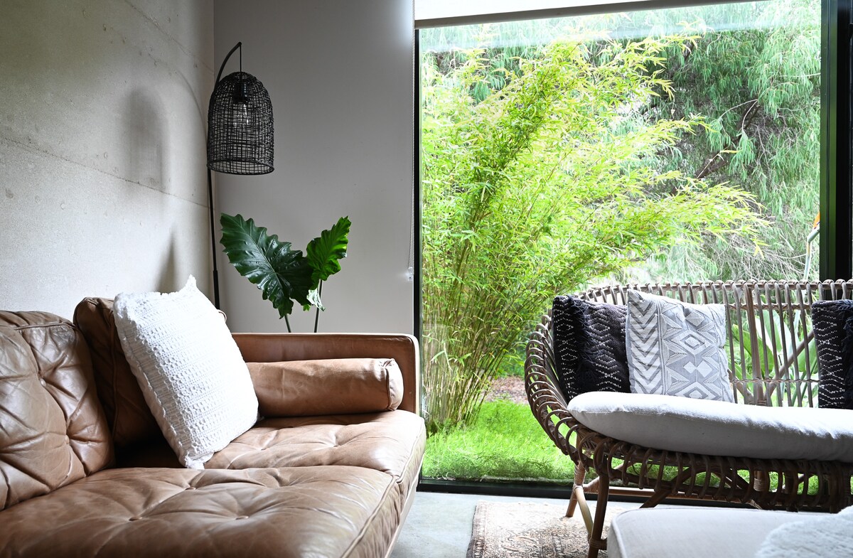 Créée par l'architecte Sean Gorman de SGM à Fremantle, cette maison est conçue pour accueillir la lumière naturelle partout. Prenez vos repas à côté des fenêtres du sol au plafond, détendez-vous dans la belle cour et rafraîchissez-vous sous la douche à effet pluie. Nous avons tout prévu dans notre belle retraite de vacances du Sud-Ouest et nous espérons que vous en profiterez autant que nous. Élu n° 1 des meilleurs hébergements de Margs par Perthisok.com Superhosts 4 années de suite 15 Grunters Way est une habitation côtière compacte, humble et élégante, soigneusement orientée pour maximiser l'accès au soleil d'hiver et la protection contre les vents froids de l'océan. La forme, la couleur et la matérialité nichent l'habitation dans le terrain de brousse vert foncé et une cour généreuse définie par des murs de calcaire soigneusement conçus qui relient de manière transparente l'intérieur et l'extérieur tout en offrant intimité et abri. Le studio est tout ce que vous pouvez imaginer pour une escapade parfaite dans le sud. Tous les appareils électroménagers modernes pour que vous vous sentiez comme chez vous avec des lits agréables et confortables, du linge de lit de qualité supérieure et des meubles spécialement choisis partout. À deux pas de la plage et des sentiers de brousse, des cafés locaux, du bar et du bistrot, vous ne pouvez pas vous tromper. Résidence privée Les gestionnaires sont à proximité pour vous aider si nécessaire. Nous vous laisserons une liste détaillée des choses à faire et des tenants et aboutissants du studio et de la région. La proximité de la maison avec la côte permet de se rendre facilement à l'océan. Passez la journée à trouver des spots de surf amusants et à bronzer sur la plage. Jouez une partie sur le terrain de golf local. Et visitez les brasseries et les vignobles à proximité. Littéralement tout ce que vous pourriez désirer à votre porte. Facile et sûr de marcher jusqu'à la plage avec accès aux sentiers pédestres et aux promenades dans la nature devant la maison.