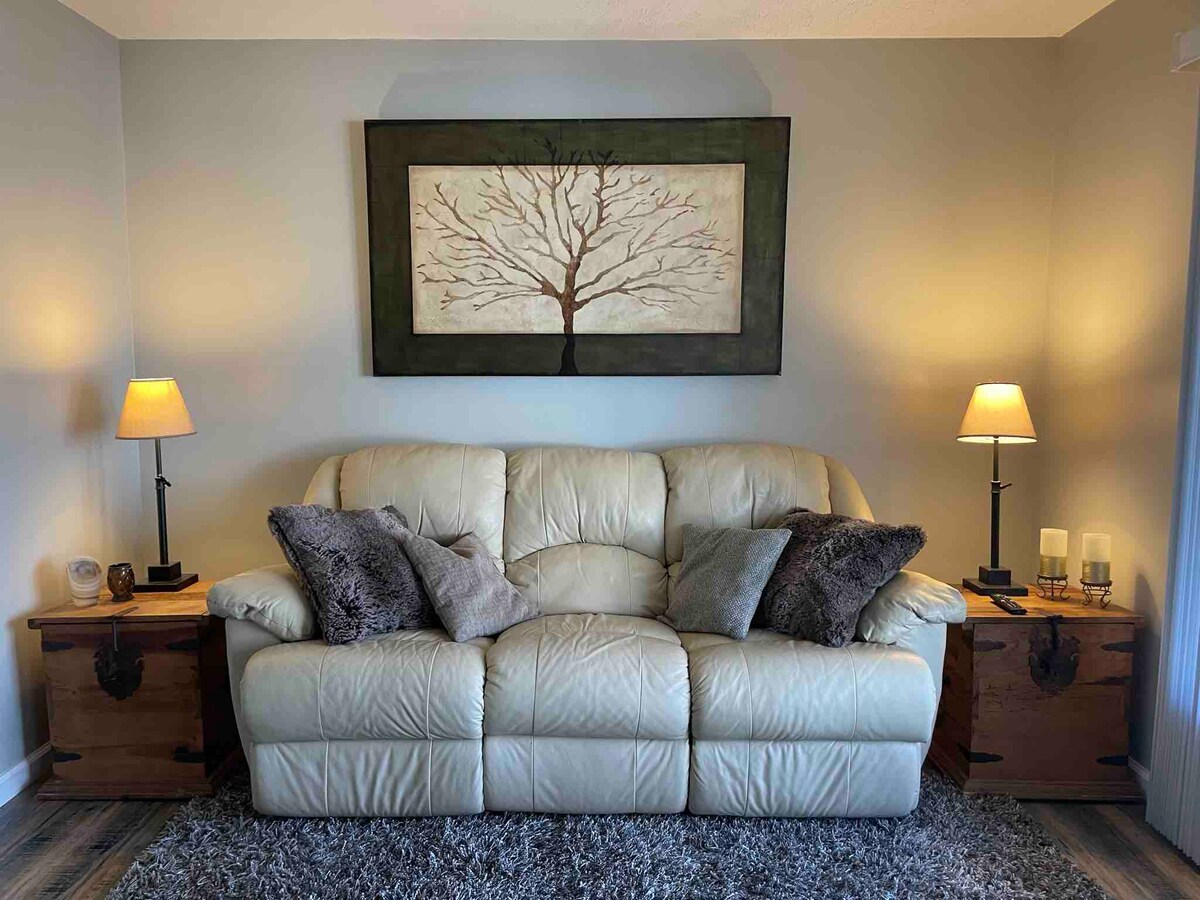 Profitez de ce chalet confortable à North Marion, à proximité des épiceries, des restaurants et de l'accès facile à l'Indiana Wesleyan University à environ 10 minutes. Les voyageurs ont accès à l'ensemble de la maison avec un plan d'étage ouvert et un espace de vie confortable. L'Internet haut débit et le bureau permettent de travailler en déplacement, tandis que les meubles somptueux et les téléviseurs facilitent la détente et la relaxation.