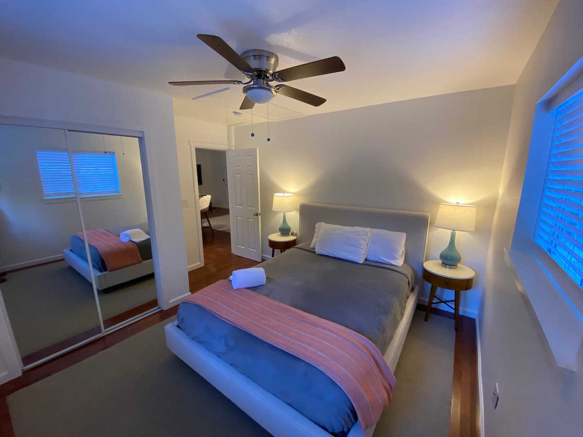 Bienvenue dans la salle de jazz. Il s'agit d'un espace de vie de 600 pieds carrés qui comprend une entrée privée, 1 chambre avec 2 lits Queen, un dressing, une kitchenette, une salle de bain privée, un salon avec canapé-lit Queen et une entrée privée. Situé au deuxième étage d'une maison historique dans le centre-ville de Riverside. Caméras de sécurité à l'extérieur, à seulement 2 rues de la ville du centre de congrès, de Mission Inn, du Fox Theatre, des bars/restaurants, de Fairmount Park et du Riverside Community College and Hospital.