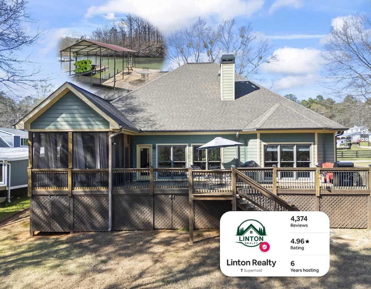 Le « Hart » du lac ! Maison de lac pittoresque et confortable au bord de l'eau au cœur du lac Hartwell. Rue calme et cachée avec très peu de voitures (beaucoup de cerfs), mais à seulement 10 minutes du centre-ville historique de Hartwell. Kayaks et flotteurs disponibles. Foyer, barbecue à gaz et grande terrasse enveloppante parfaits pour les divertissements. Profitez du coucher de soleil sur notre quai privé. Idéal pour une retraite de week-end au bord du lac ou un séjour prolongé. Wi-Fi 200 Mbps, grand parking, location de bateaux et dépose de bateaux à proximité.