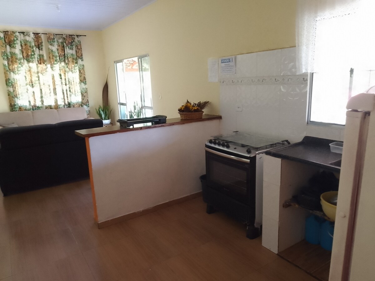 Conforto e praticidade em uma casa completa para toda a família Relaxe e aproveite sua estadia nesta casa aconchegante e funcional. Com dois dormitórios bem iluminados, sala espaçosa, cozinha equipada e um banheiro, é o espaço ideal para casais, famílias ou profissionais em viagem. A casa conta ainda com área de serviços e um espaço dedicado ao trabalho remoto, garantindo conforto e produtividade. Para quem vem de carro, há garagem para um veículo