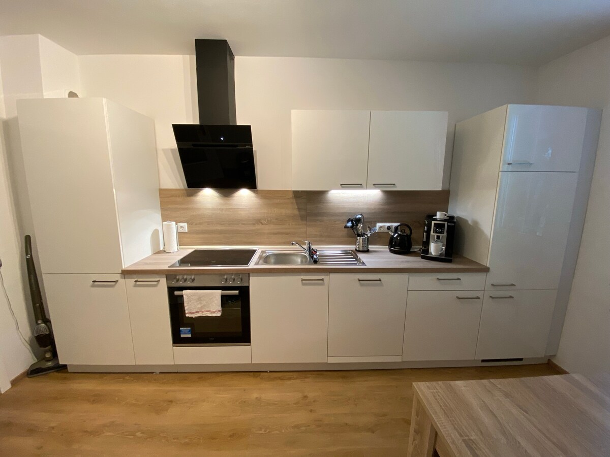 Nouveau et très spacieux. Notre appartement a été achevé en 2024. Il est situé au pied du Kornberg au milieu d'une agriculture active. Il a une entrée séparée et deux places de parking gratuites. La ville de Selb est à environ 6,5 km. Il s'agit d'un appartement de 2 pièces sur deux étages pour 1-5 personnes. (6 personnes sont possibles sur demande)