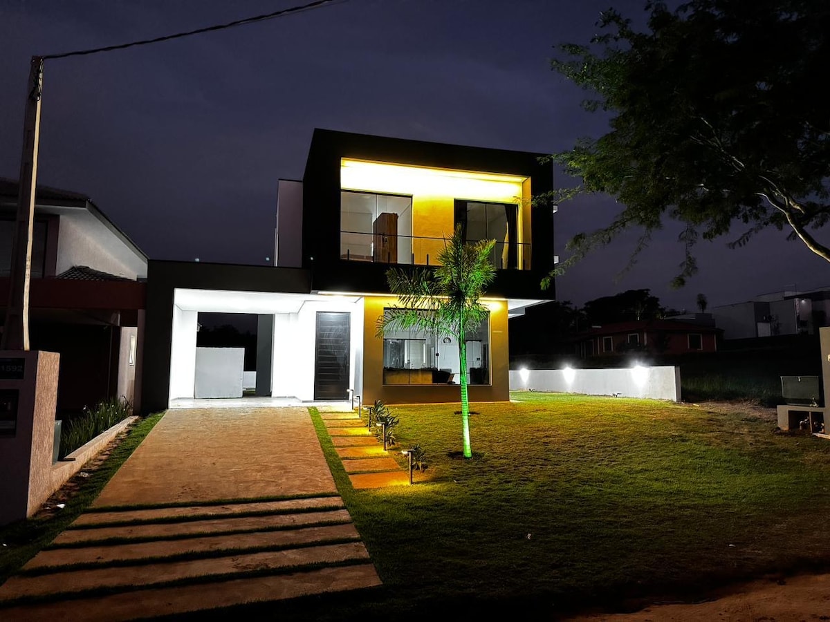 La maison conçue par l'architecte Décio Navarro se trouve dans une communauté fermée avec une plage privée et une sécurité 24 heures sur 24. Avec 650 mètres de zone utile, notre maison est devant le barrage et dispose de 5 suites, de grandes chambres et de loisirs complets : piscine, barbecue, four à pizza, sauna et jacuzzi. La copropriété dispose également d'un court de tennis avec éclairage nocturne, d'une jetée, d'une rampe d'accès pour les petits bateaux et de beaux espaces pour les promenades.