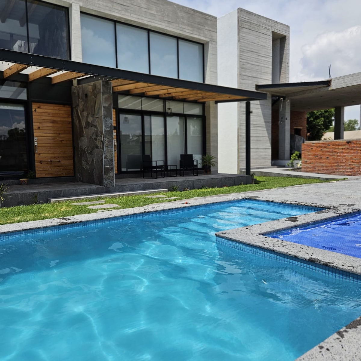 Excelente opción para unos días de descanso o trabajo remoto, ubicada en un fraccionamiento muy seguro, vigilancia 24h. Amplios espacios iluminados, estacionamiento, jardín con asador, alberca privada, cocina, refrigerador, lavadora/secadora de ropa, TV, sala/comedor. Pet friendly/aceptamos mascotas. Las recamaras están increíbles!! *Alberca se encuentra a temperatura ambiente con opción de climatizarla con costo extra*